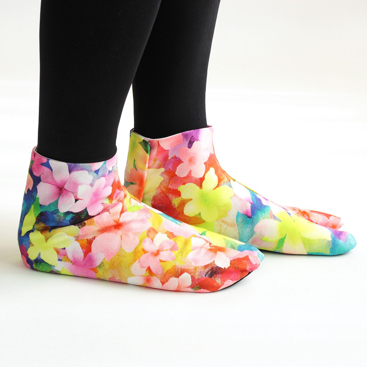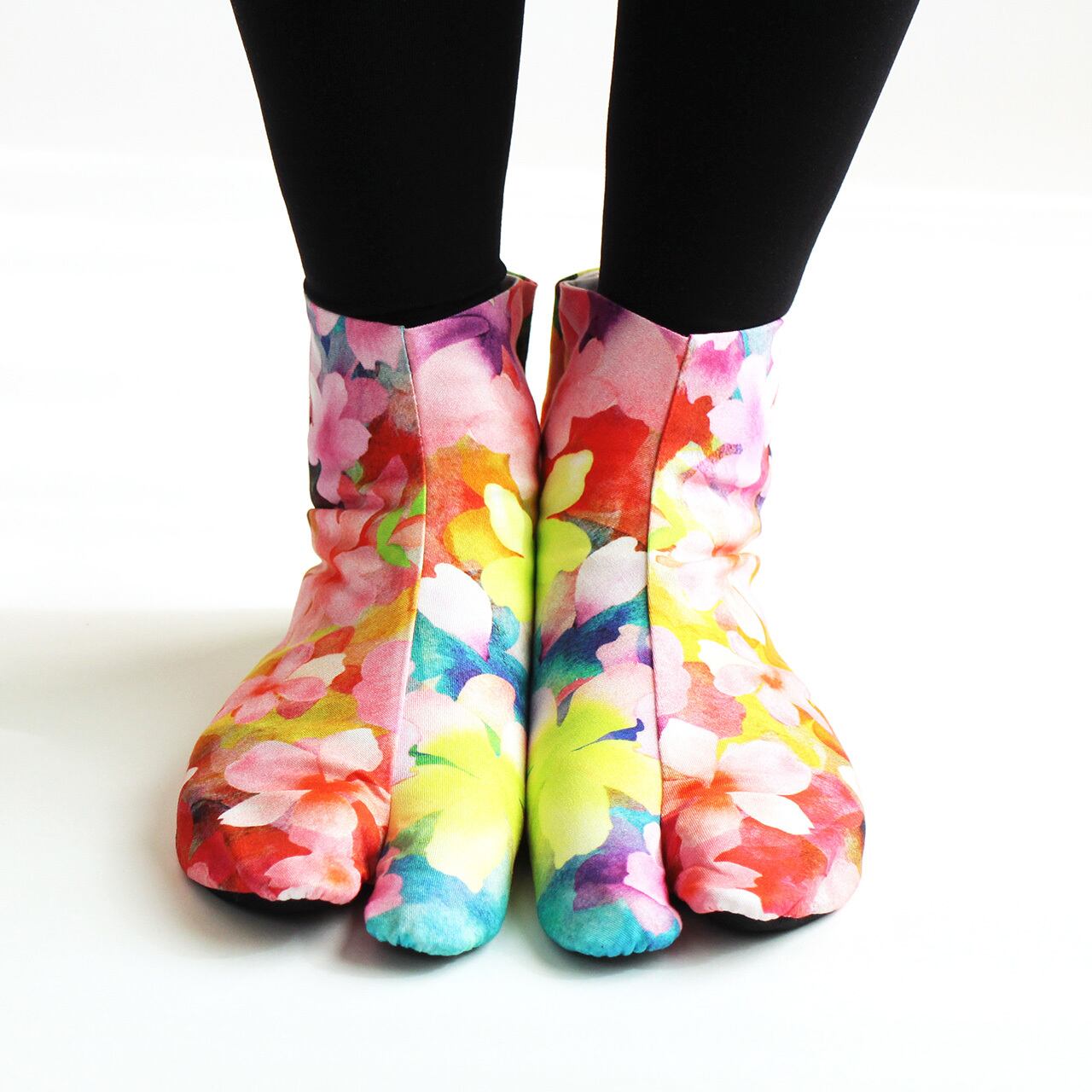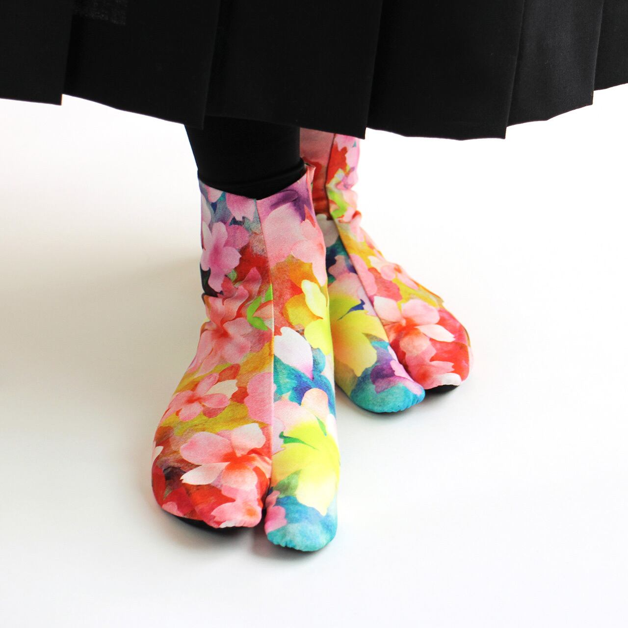 言葉では表現できない感覚やインスピレーションを描いたグラフィックアートのオリジナルファブリックを足袋職人さんによって丁寧に仕立て頂いています。