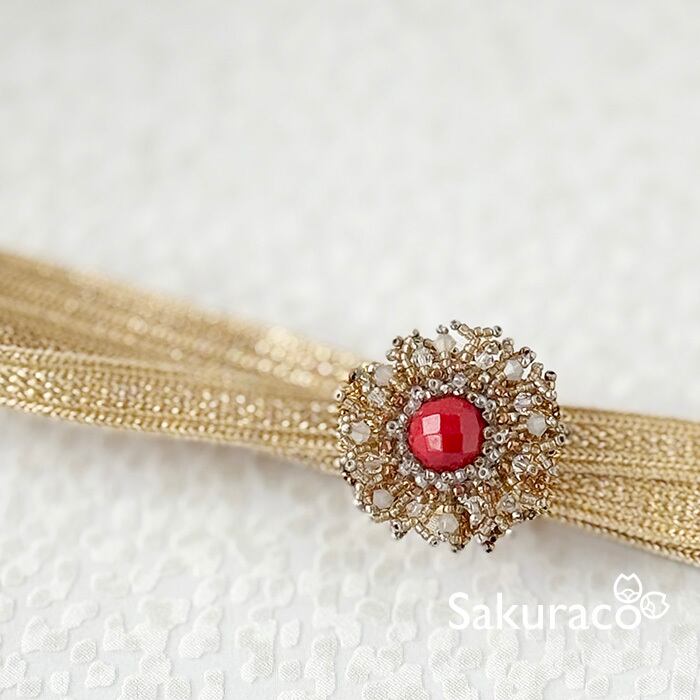 *素材:染珊瑚、スワロフスキー、シードビーズ