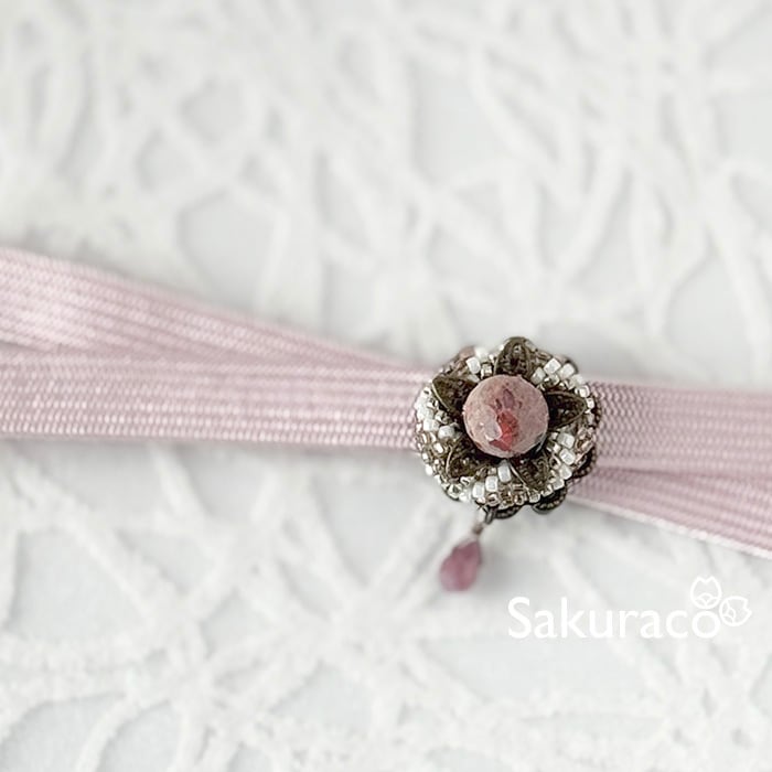 *素材:シルバーリーフジャスパー、ルビー、シードビーズ