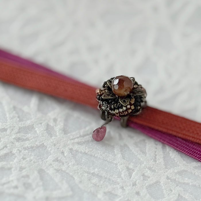 センターはニュアンスのあるブラウンのビンテージビーズです