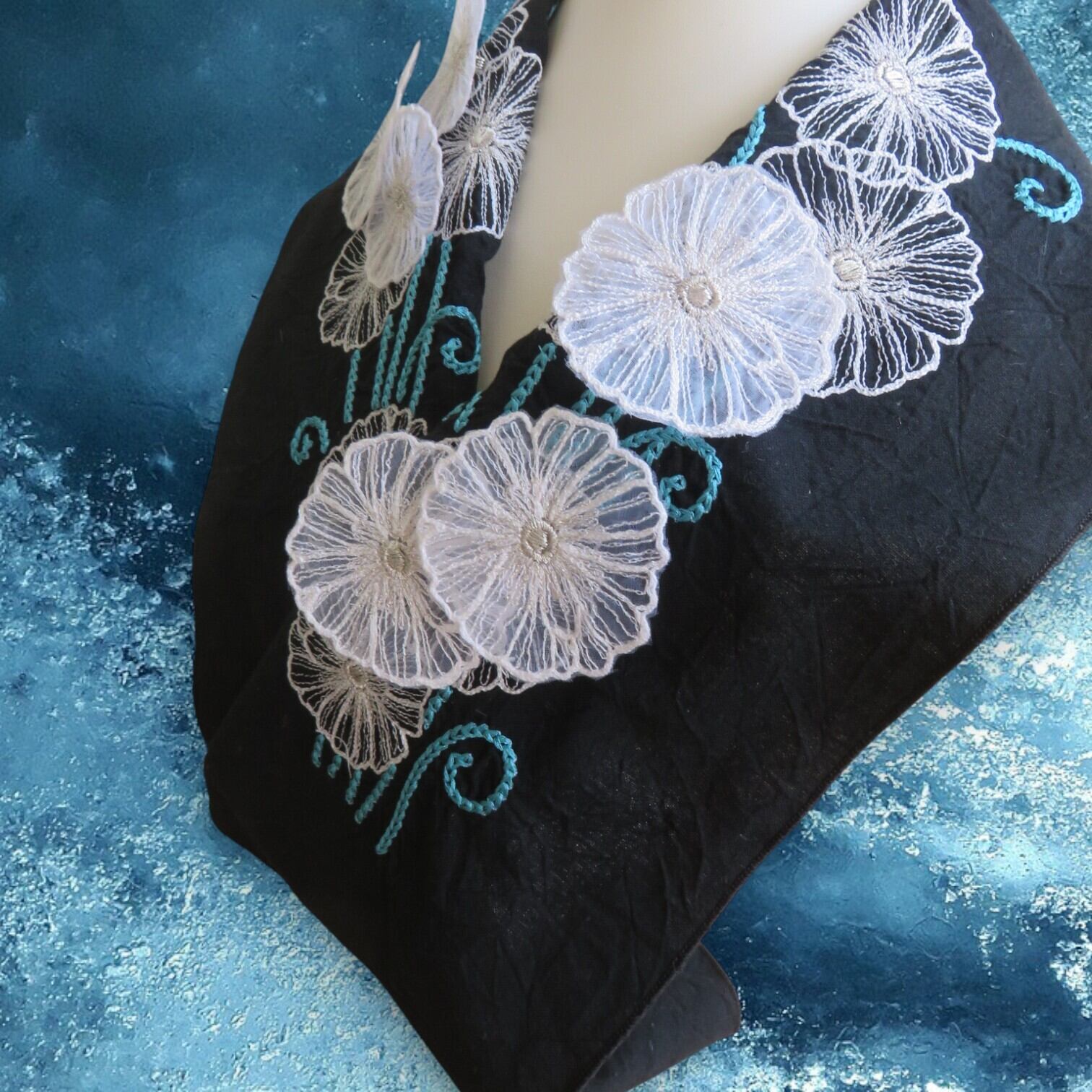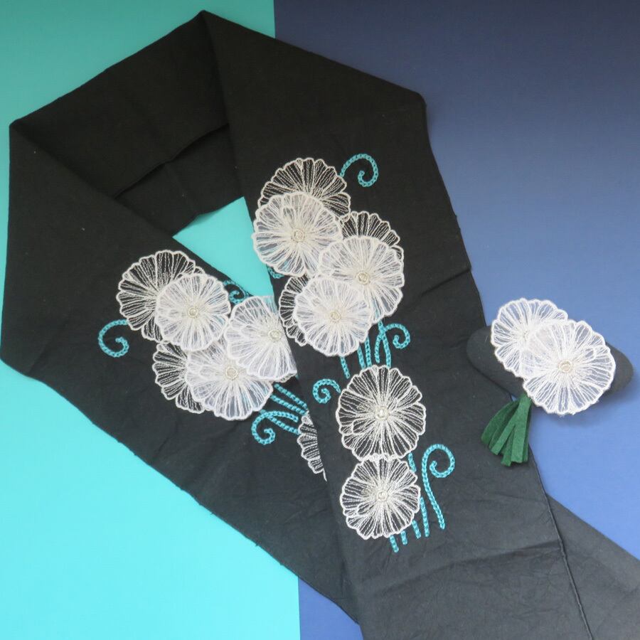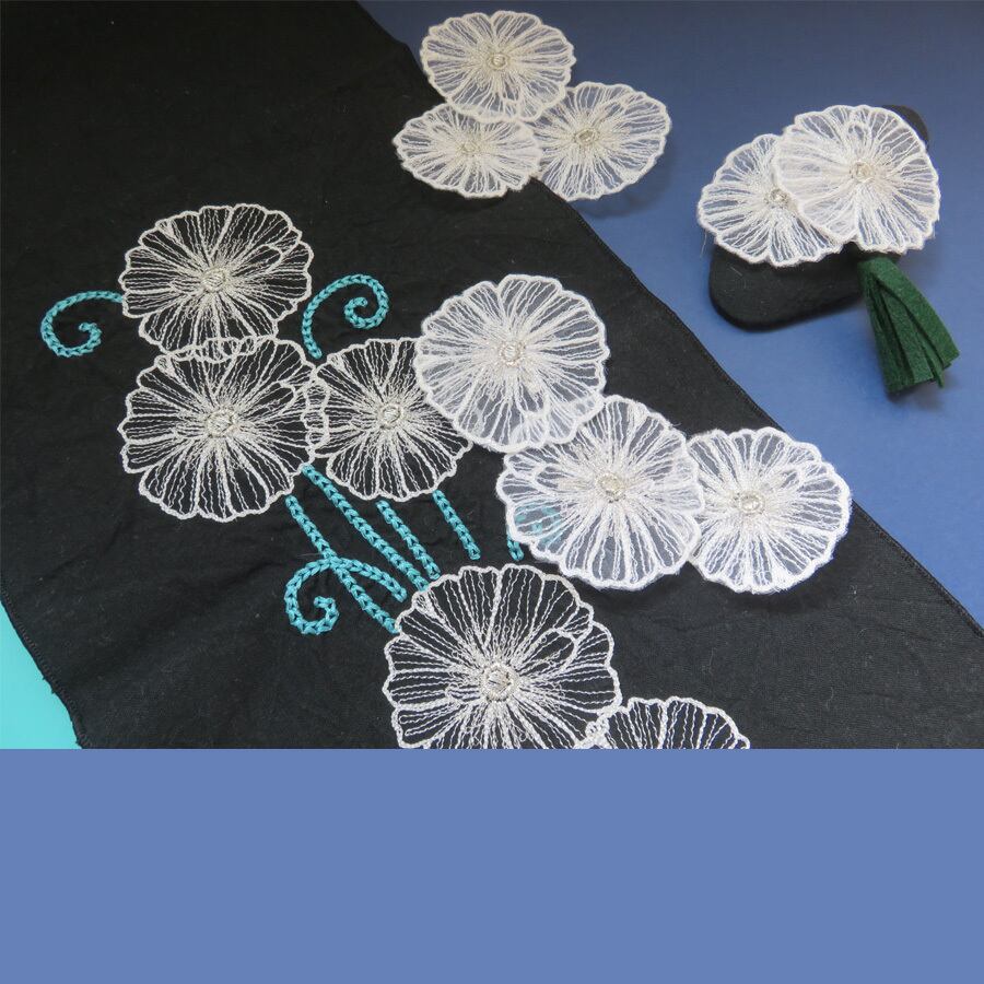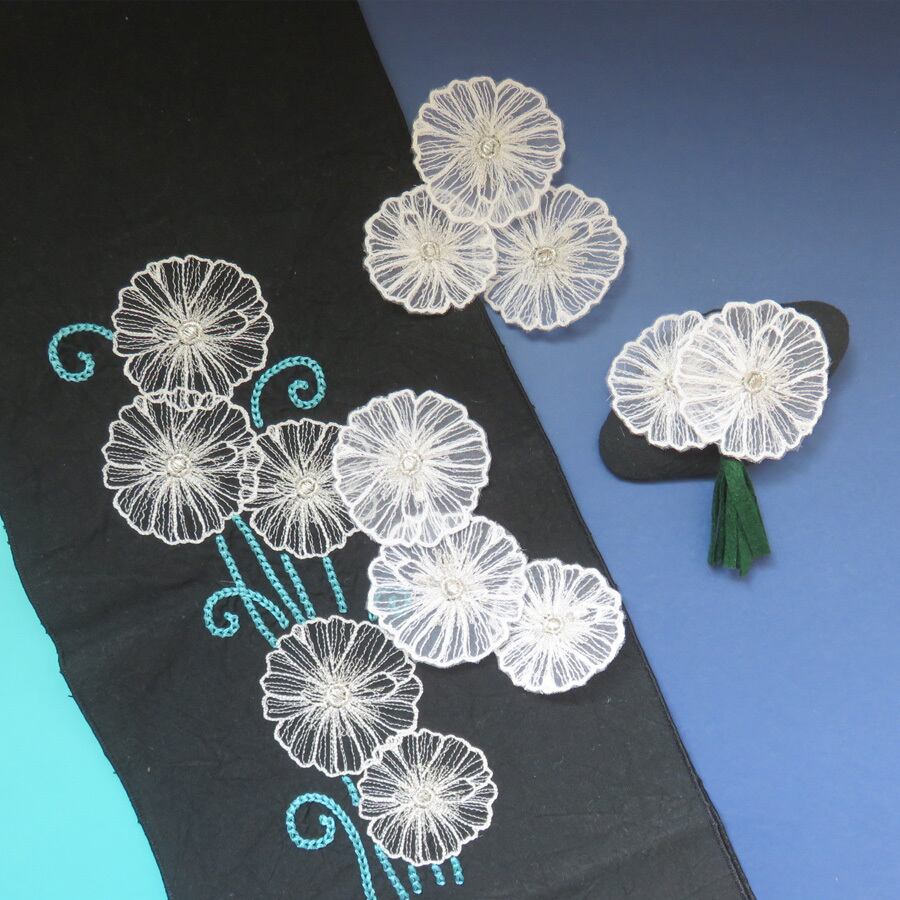 黒い布に刺繍した花はアネモネ?ひなげし?
