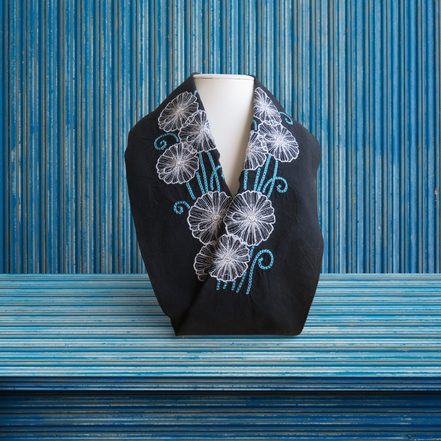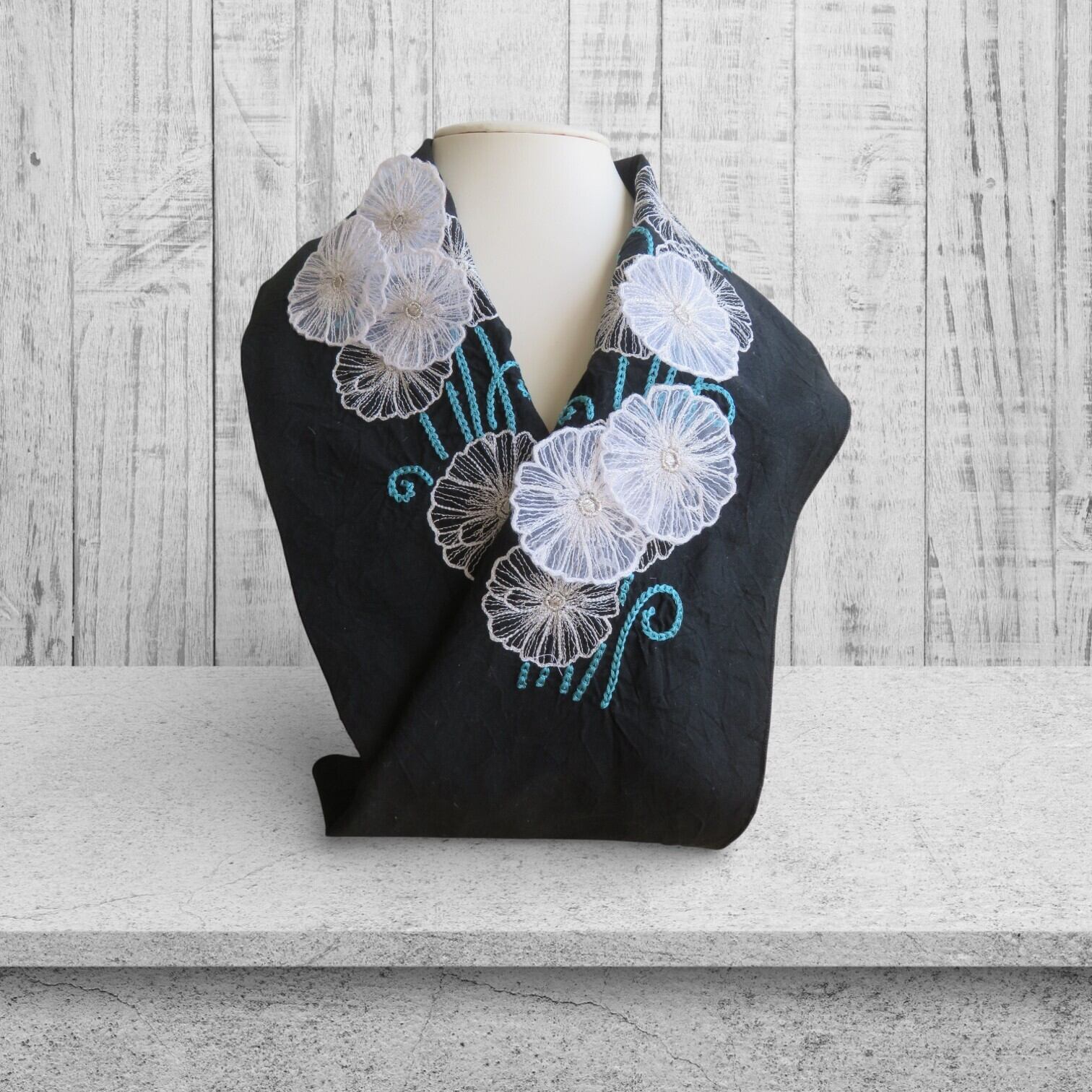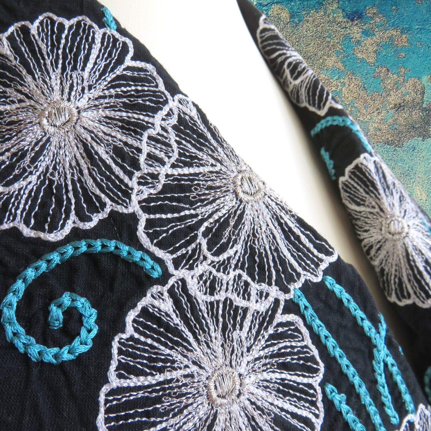 黒い布に刺繍した花はアネモネ?ひなげし?