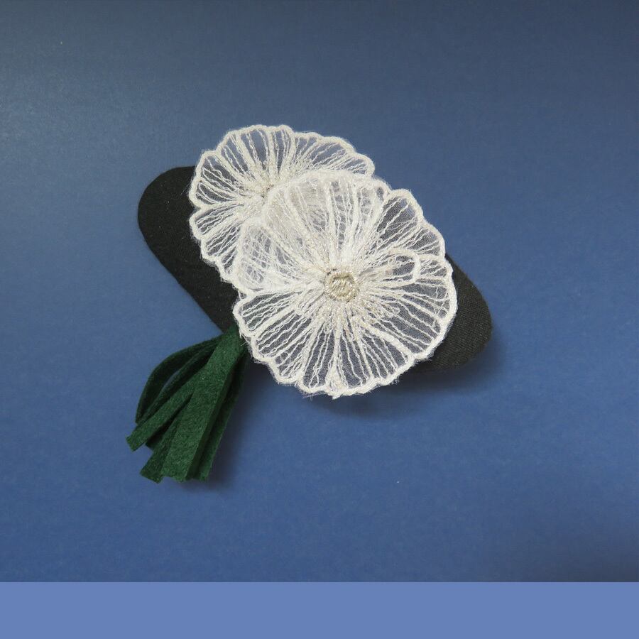 そのままでも素敵ですが色とりどりのお花のブローチを追加して楽しめます。